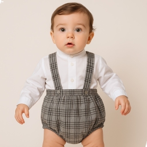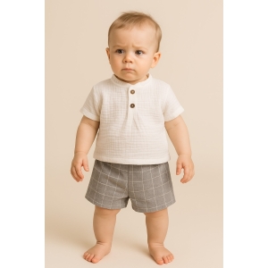 Ver detalhesRef:99 CONJUNTO MENINO PÉROLA COM XADREZ CINZA - Coleção Primavera/ Verão