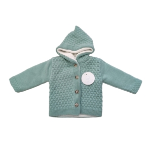 REF:308 CASACO DE TRICO COM CAPUZ - AZUL BÉBÉ