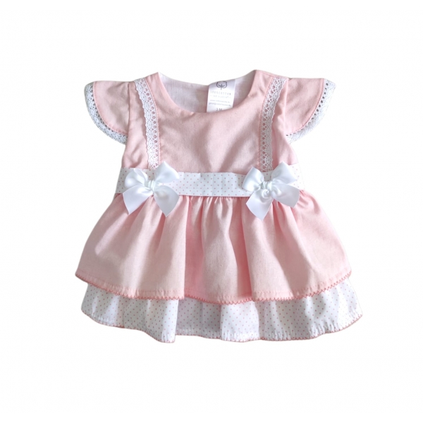 PQ500 VESTIDO ROSA C/ PINTAS E RENDA