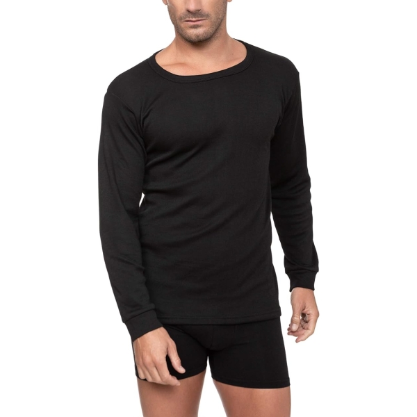 Ref:C224 Pack 6 Camisolas Cardadas Homem Preta Ribe Manga Comprida