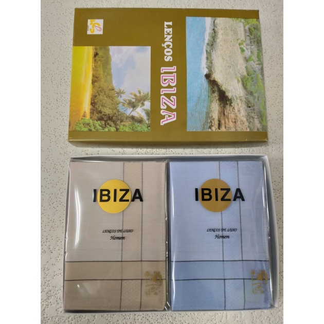 Ref:IBZ2002 CAIXA DE 12 UNIDADES LENÇOS BOLSO HOMEM IBIZA ( 100% ALGODÃO )