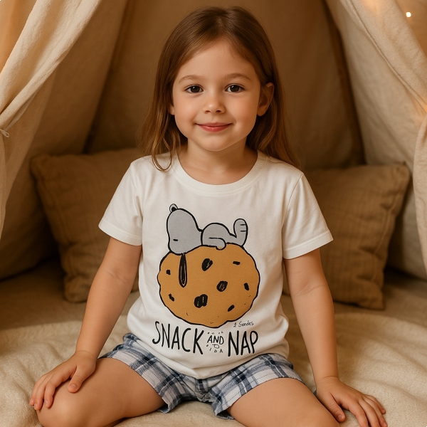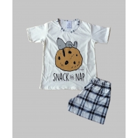 SD511 PIJAMA MENINA DE CALÇÃO E MANGA CURTA ( SNACK AND NAP ) 100% ALGODÂO