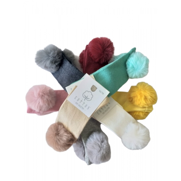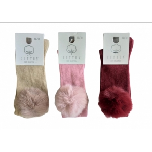 MA104 MEIA ALTA C/ POM POM DE PÊLO 100% ALGODÃO