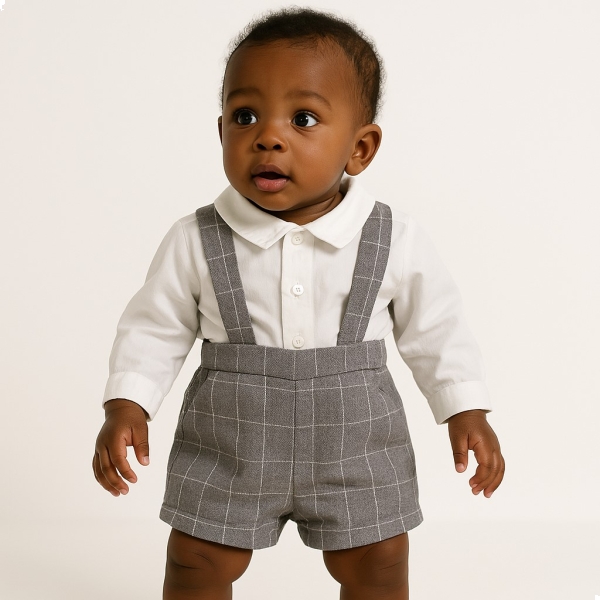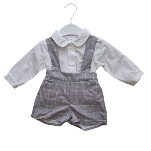 Ref:99 CONJUNTO MENINO PÉROLA COM XADREZ CINZA - Coleção Primavera/ Verão