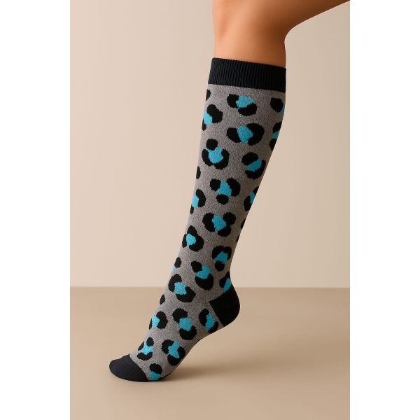 Meias de suporte confortáveis e de alta qualidade que oferecem ótimo suporte para pernas cansadas. Compressão gradual do tornozelo para cima. A meia estimula e aumenta a circulação sanguínea e previne o inchaço. Usar meias de compressão também pode prevenir varizes e coágulos sanguíneos. Esta meia de suporte tem alto teor de algodão, o que a torna muito macia e confortável para a pele. Pé com formato anatômico e calcanhar e biqueira reforçados.
