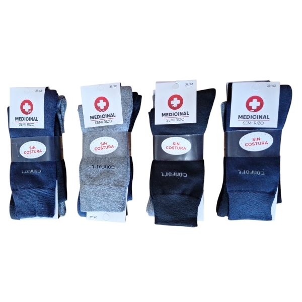 Ref:27-02 Pack 12 Pares de Meias Medicinal S/ costura Palmilhadas 100% Algodão