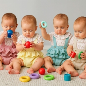 O tecido em algodão garante máximo conforto para a pele sensível do bebé, enquanto o design delicado proporciona um visual encantador.