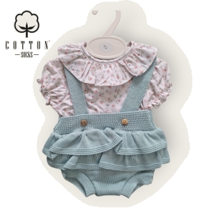 Conjunto: Blusa + Tapa-fralda com folhos e alças