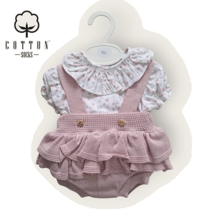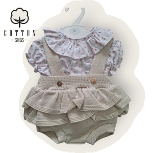 Composto por uma blusa florida e um tapa-fralda com folhos e alças, este conjunto alia elegância e praticidade para o dia a dia ou ocasiões especiais.