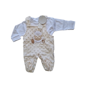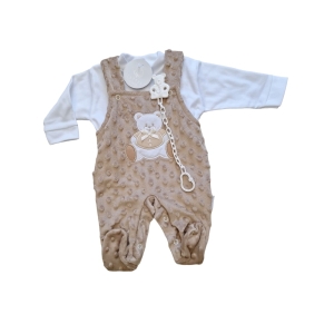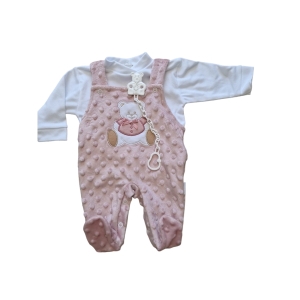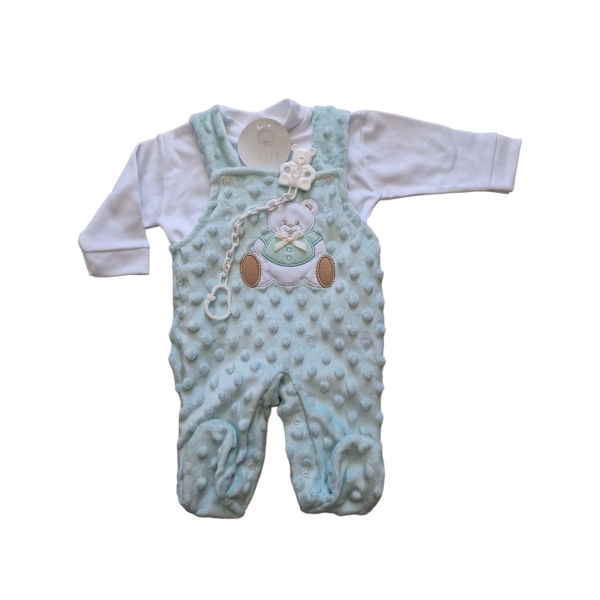 702 Jardineira pipoca laminada com porta chupeta ( Outono/Inverno)